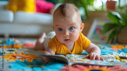 Curious Baby Exploring Colorful Picture Book - Early Learning and Development Concept