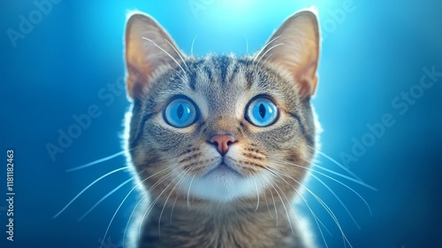 Curious blueeyed cat gazing upwards, a captivating portrait of feline wonder blueeyed