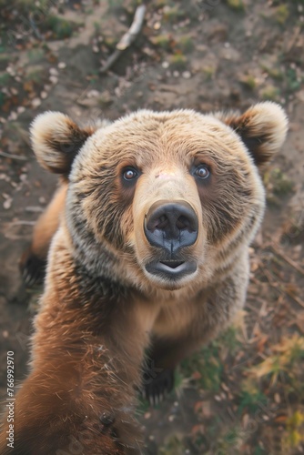 Curious brown bear close-up, selfies, wildlife portrait, nature wildlife theme
