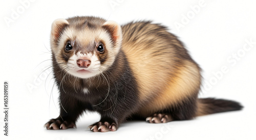 Curious Ferret on White Background