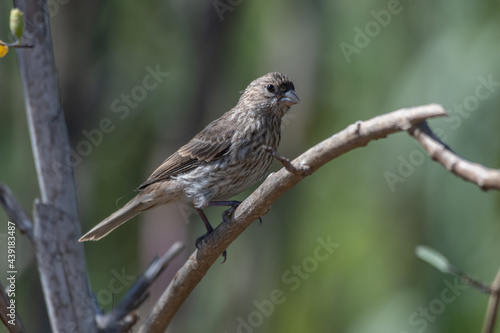 Curious finch clings to deadwood tree branch with a watchful eye looking out for danger in the estuary.