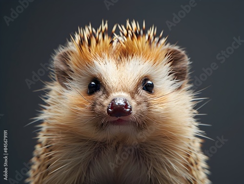 Curious Hedgehog with Raised Spines Observing in Close Up Wildlife Portrait