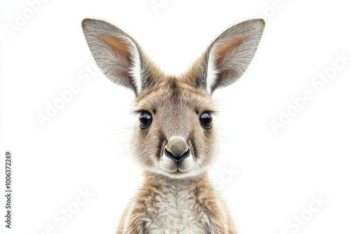 Curious Kangaroo Joey Peeking from Pouch, Pastel Painting on White Background