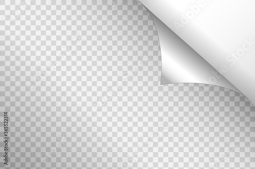Curled corner of paper on transparent background with soft shadows