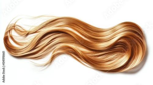 Curly blond hair lock, isolated on a white background. The curls are tight and bouncy, showcasing the natural texture and shine of the hair. --chaos