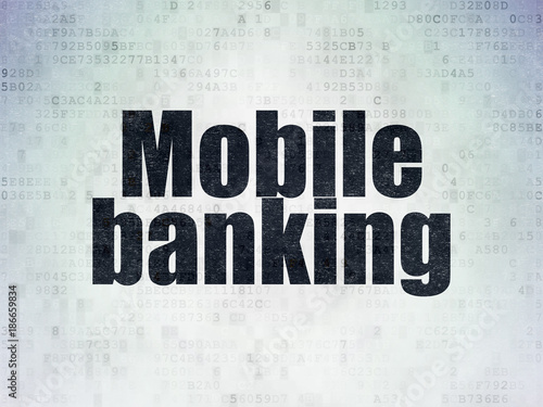 Currency concept: Painted black word Mobile Banking on Digital Data Paper background
