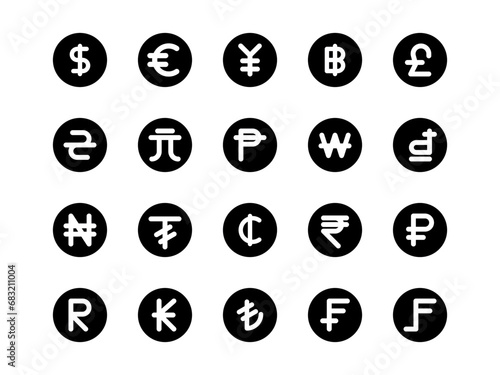 Currency Icon Set Circular Style. Finance and Exchange Rate Icons Collection, Perfect for Websites, Landing Pages, Mobile Apps, and Presentations. Suitable for UI UX.