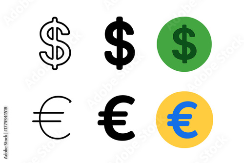 Currency Symbol Icons. Linear minimalistic dollar symbol icon: simple dollar outline, uniform line thickness, no fill, Solid