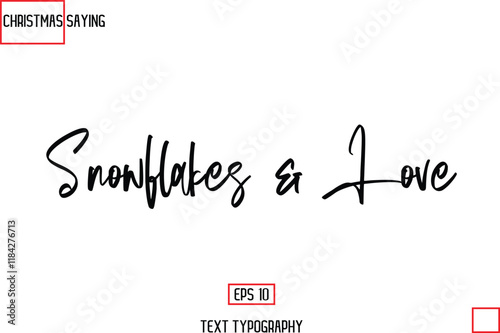 Cursive Typography Text Of Christmas Holiday Phrase Snowflakes & Love