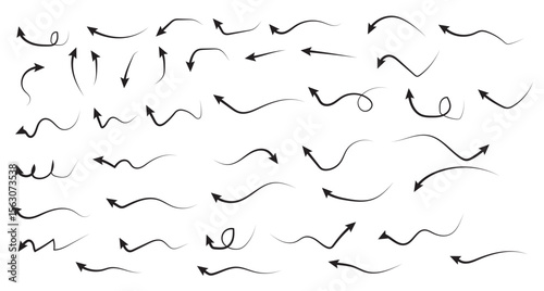 Curved arrows set for business plan, presentation and education. Sign, Symbol, Hand drawn arrow collection