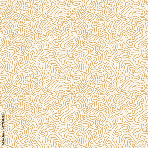Curved geometric vector pattern. Yellow, gold curved serpentine lines. Abstract brain shapes background texture.
