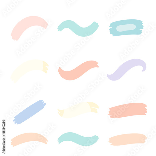 Curved pastel brush pink swipe short violet icon lemon vector strokes