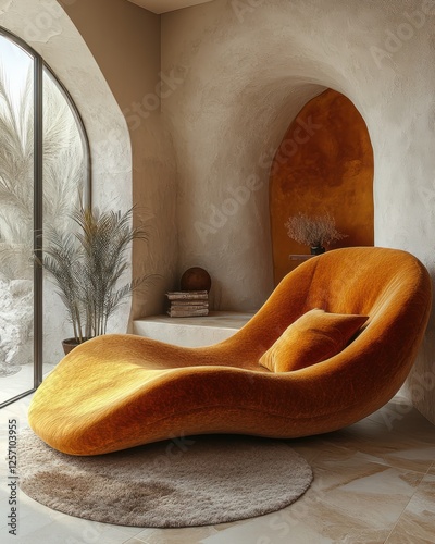 Curved Sofa in Vibrant Orange and Yellow Tones Modern Loft Living Room Interior Design