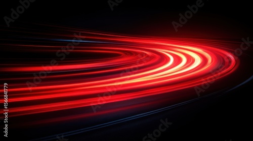 Curvy trails of brilliant red light flow gently, evoking a sense of speed and movement