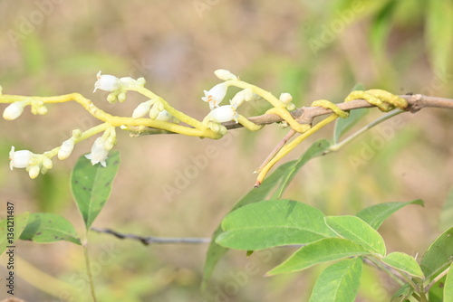 Cuscuta or Dodder flower. It is a genus of over species of yellow, orange or red parasitic plants. Its identified by its thin stems appearing leafless, with the leaves reduced to minute scales.Amarbel