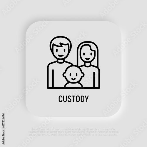 Custody thin line icon, happy family with baby. Modern vector illustration of child adoption.