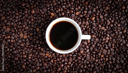 Custom AI Model top view of cup of black coffe put it on coffe beans background. White cup of black coffee