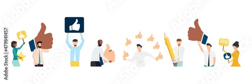 Customer feedback, testimonial, online survey concept. Group of people rating customer experience, writing review, leaving feedback. Client, user satisfaction. Isolated flat vector illustration