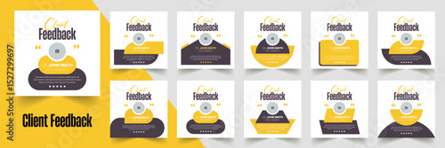Customer feedback testimonial social media post web banner template Bundle. Customer feedback review or testimonial social media post design
