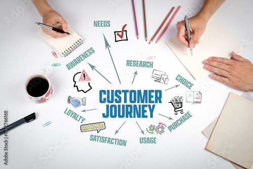 Customer Journey Concept. Illustration Chart with Icons and Keywords