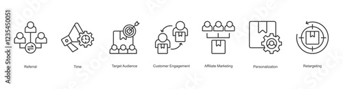 Customer Personas Icon Referral, Time, Target Audience, Customer Engagement, Affiliate Marketing, Personalization, Retargeting