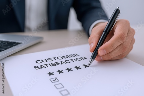 Customer Satisfaction Survey: Person Giving Top Rating, Five Stars, Best Review Feedback and Excellent Customer Service