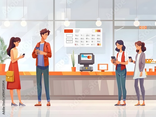 Customers Using Mobile Devices for Cashless Payments in Modern Retail Environment