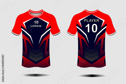 Customizable Red and Blue Sports Jersey Design for Team or Player Personalization
