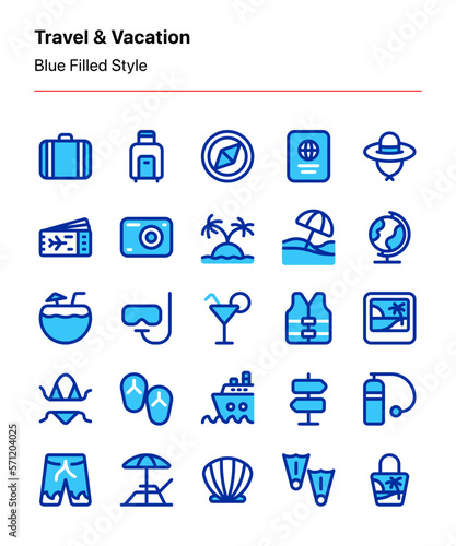 Customizable travel and vacation icon set consisting of travel, tourism, and beach vacation elements. Perfect for apps, websites, advertisements, marketing, business, agency, etc