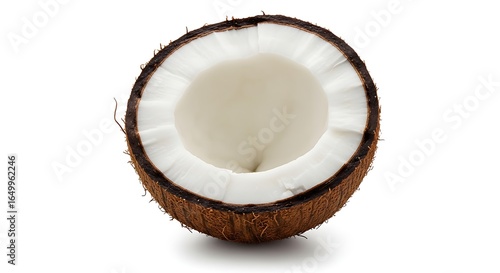 Cut Coconut Half Isolated on White Background for Tropical Food