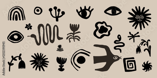 Cut out collage organic floral abstract form in retro vintage style. Naive simple hand drawn doodle sketches.