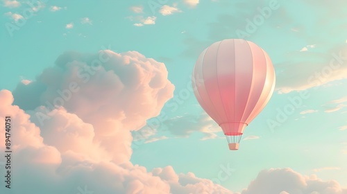 Cute 3D Air Balloon Floating in Pastel Sky,Whimsical Travel Adventure Minimal Render