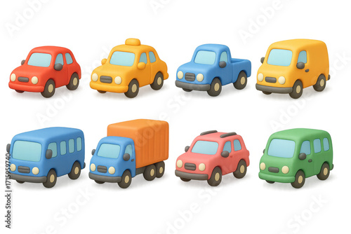Cute 3d cartoon vehicles set with vibrant colors and playful design