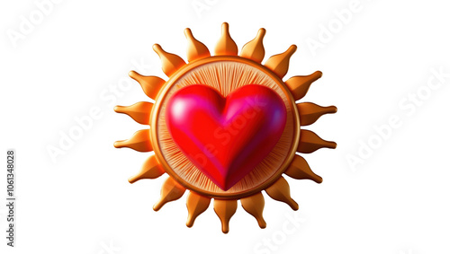 Cute 3D kindness symbol with a heart in the middle of a warm sun. on a isolate white background, Png.