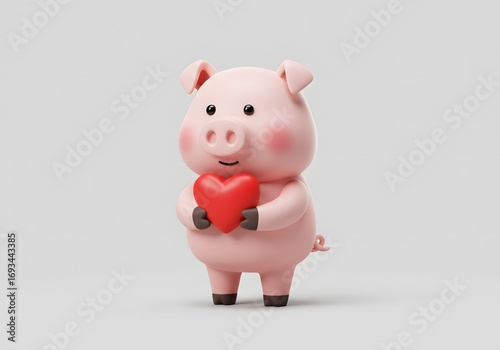 Cute 3D Pig Holding a Red Heart, Symbol of Love and Affection