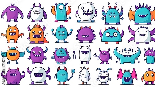 Cute abstract cartoon characters set. Bundle of different types of colorful monsters with simple shapes. Mascots expressing emotions. childrens illustration in flat design isolated collection