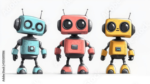 Cute ai robot evolution mascot cartoon vector set. Digital modern computer bot design icon isolated. Artificial intelligence mechanical companion friend for communication and education in internet.