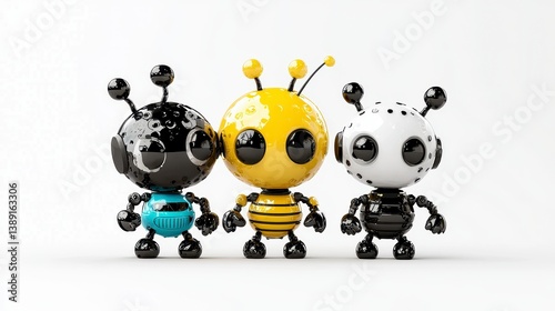 Cute and Colorful Cartoon Robots with Bee-Inspired Designs
