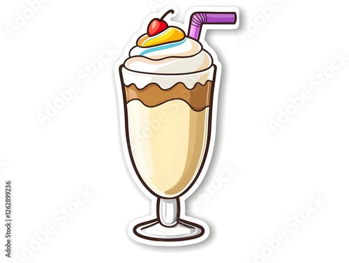 Cute and Colorful Milkshake Sticker Style Illustration with Bold Outline and Bright Colors