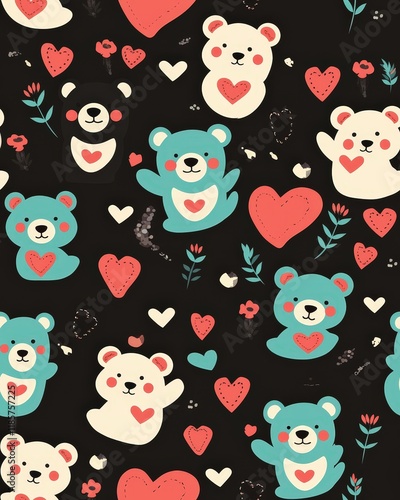 Cute and Playful Bear Pattern Design on Dark Background
