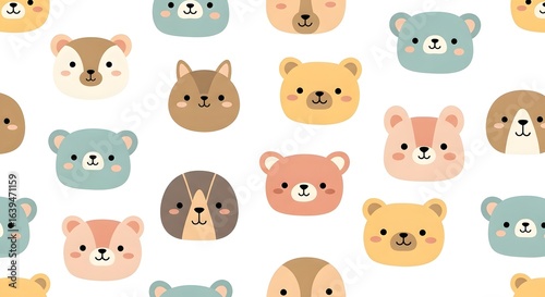 Cute Animal Face Seamless Pattern