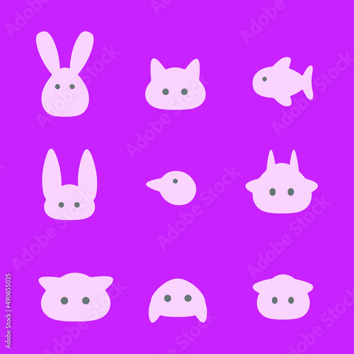 cute animal head icon set. easy editable fit for artprint, fabric and home good.