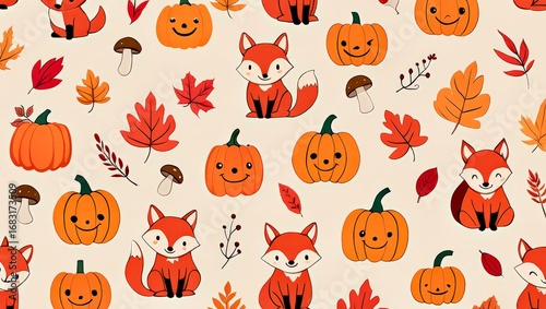 Cute autumn fox pattern seasonal seamless design for creative projects