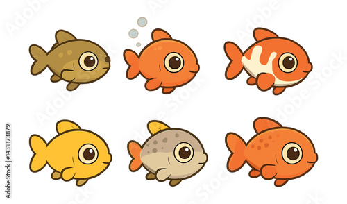 Cute baby fish icons set - - 6 adorable designs for aquatic themes. Vector icons