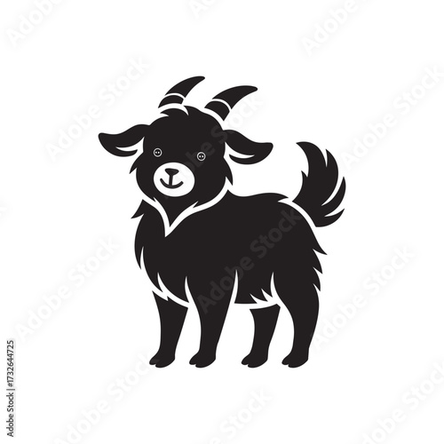 Cute Baby Goat Silhouette Vector Illustration on White Background