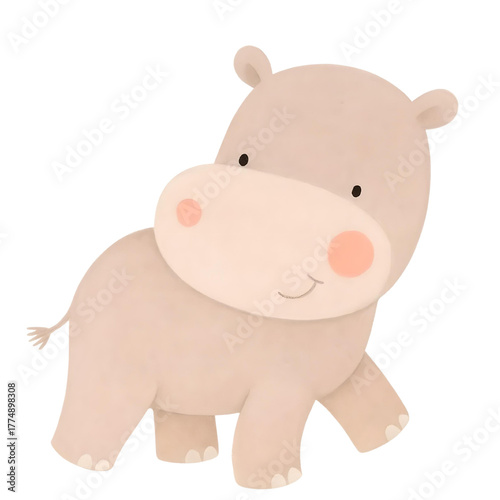 Cute Baby Hippo Clipart | Minimalist Animal Illustration for Nursery Decor and Kids Prints