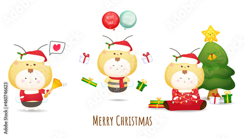 Cute baby in costume for merry christmas illustration Premium Vector
