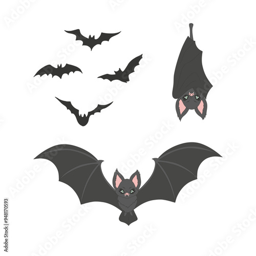 Cute bat vector clip-art set isolated on white. Coquette Halloween illustration.
