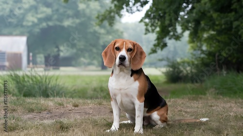 Cute Beagle Dog Sitting