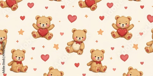 Cute bear pattern with hearts and stars for baby products, nursery, whimsical
